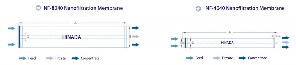 | NF1/NF2-4040 | 7.6 m² | 2000 GPD (7.6m³/D) | >98% | 30—60% | 0.5—0.75MPa |