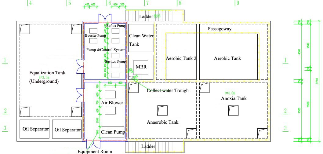 Wastewater——Bar Screening-—Equalization Tank——Anaerobic Tank——Anoxia Tank——Aerobic Tank——MBR Tank——UV Sterilize——Clean Water Tank